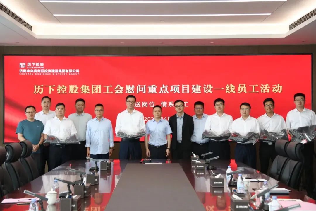 为感谢集团重点项目建设一线员工的辛勤劳动和默默付出,体现集团人文关怀、凝聚员工人心、培养企业向心力,切实发展和谐劳动关系,维护一线职工职业健康安全权益,4月19日,集团工会开展“春送岗位”慰问活动,历下控股集团党委委员、纪委书记、工会主席徐玉涛,历下控股集团综合管理部/党群工作部总经理马春萧一行为建设项目一线员工送福利,鼓干劲,助力集团各项生产经营工作稳健发展。中央商务区集团副总经理张垒,总经理助理张毅、张道强,安全生产部部长刘宗强及各项目部员工代表参加本次活动。
