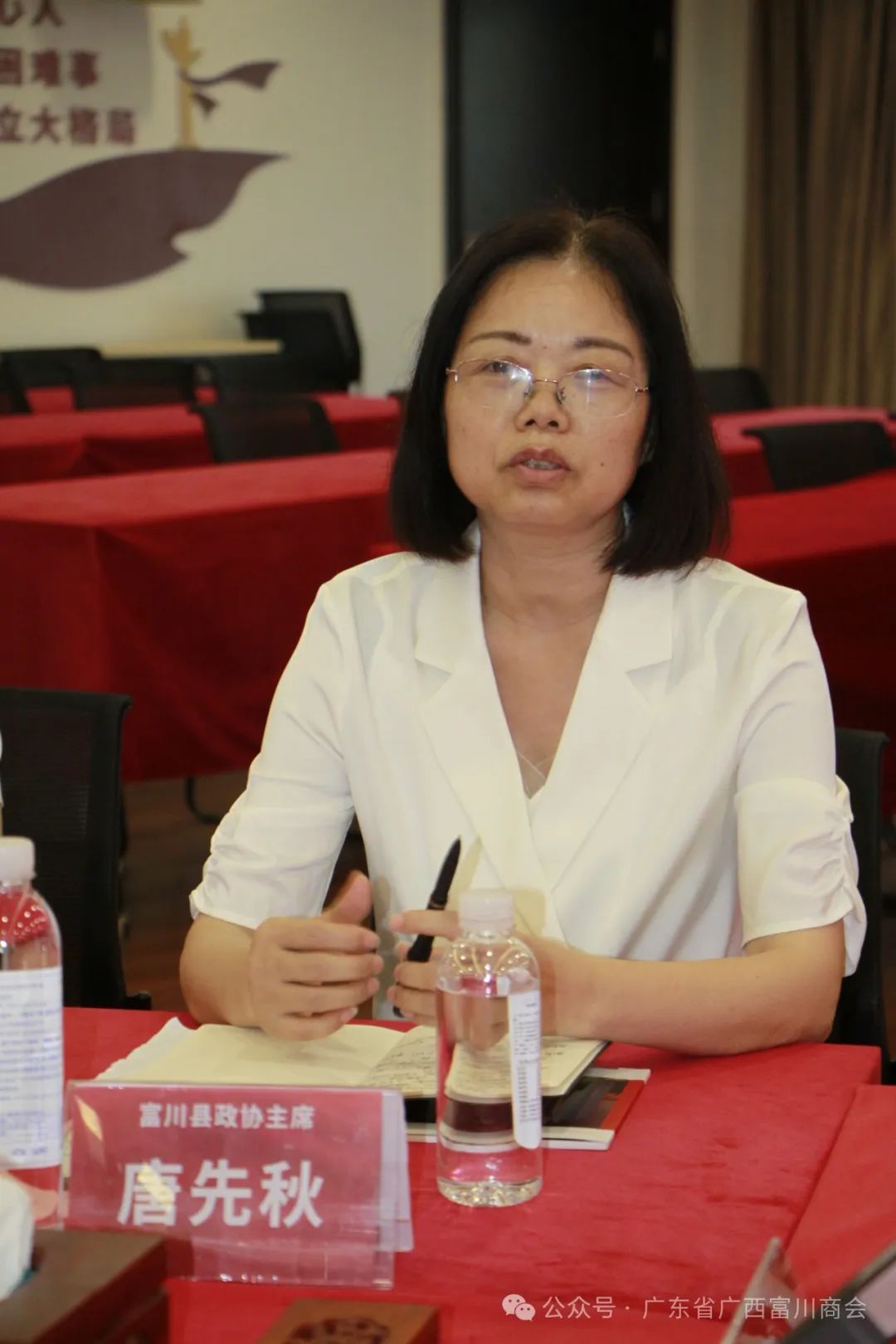 (图为2022年12月政协主席唐先秋出席富川县粤港澳大湾区经贸联络处办公室揭牌仪式)