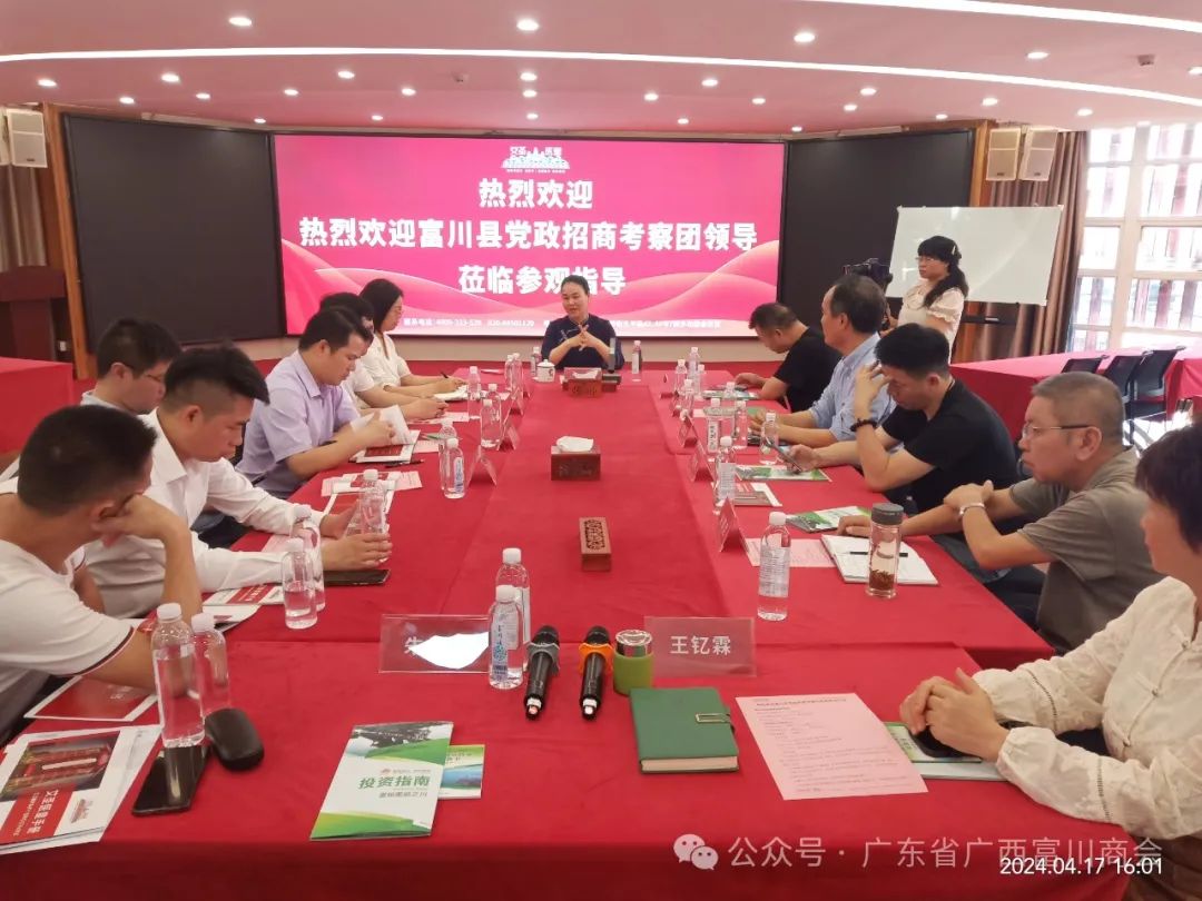 2024年4月17-19日,富川县政协主席唐先秋率领县党政招商考察团在广东广州、东莞等地招商考察,广东省富川商会协助落实并积极推进相关工作。