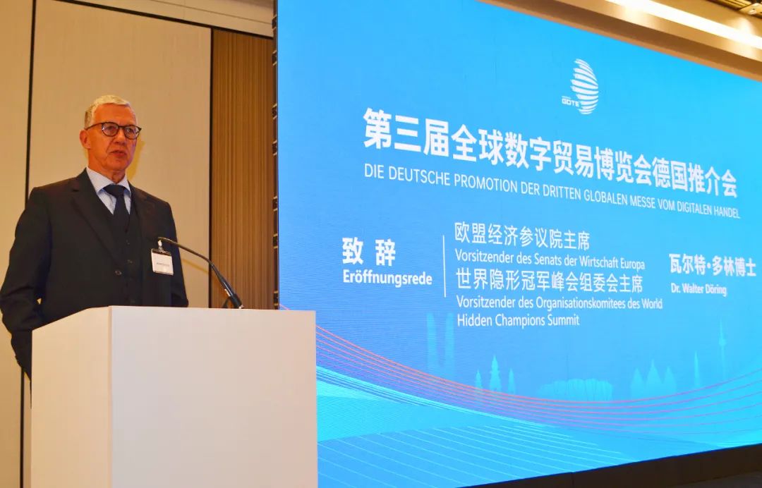 德国联邦经济发展和对外贸易协会主席迈克尔·舒曼,欧盟经济参议院主席、世界隐形冠军峰会组委会主席瓦尔特·多林博士分别致辞,分享了中德工商合作及法兰克福数字贸易领域的成功经验和先进理念,交流了法兰克福与杭州数字贸易合作领域。