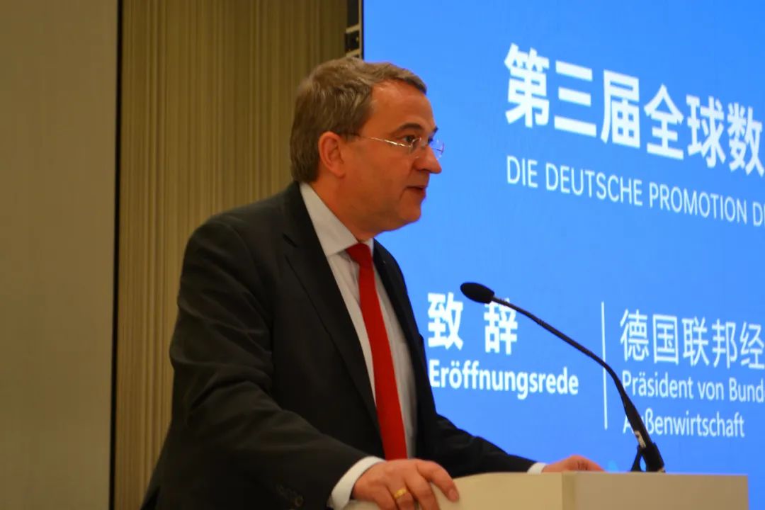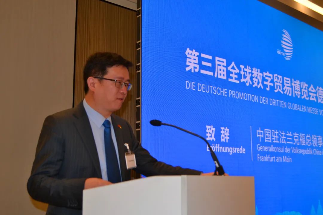 黄昳扬总领事在致辞中表示,在传统经贸合作基础上,数字贸易将中德两国更紧密地连在一起,成为中德互利合作的新领域和新引擎。德国是传统工业强国,拥有先进的工业技术和管理经验,最先推出“工业4.0”理念。中国则是工业互联网的最佳实践者,正在大力发展新质生产力,在大数据、人工智能、5G通信等领域发展迅速,同时深入推进绿色低碳发展、大规模工业设备更新和消费品以旧换新,拥有广阔的数字化应用场景。非常期待第三届数贸会期间,德国企业围绕电子商务、人工智能、数智出行、智慧城市、数字医疗等话题与中国企业一起,拓展数字贸易全球朋友圈。