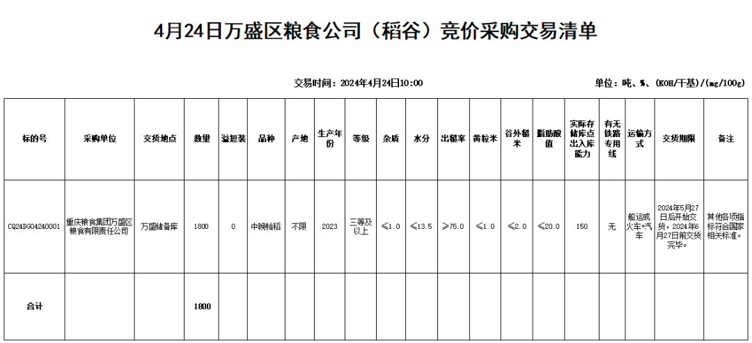 1.成交价格:到达重庆粮食集团万盛区粮食有限责任公司万盛储备库仓前交货价。