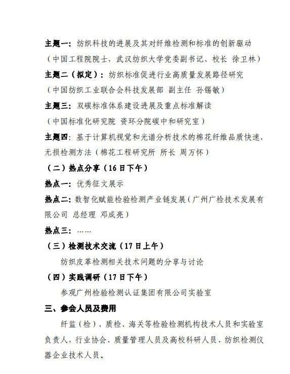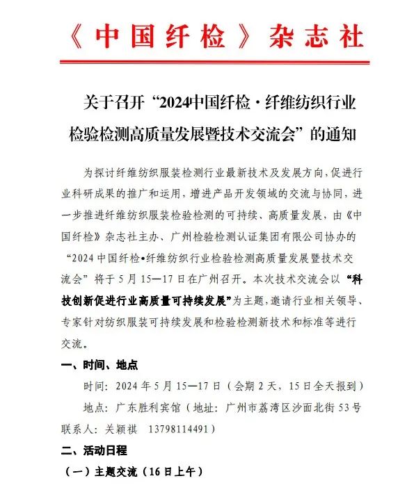 1.“2024中国纤检· 纤维纺织行业检验检测高质量发展暨技术交流会”论文征集通知