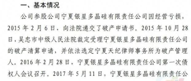 首先,让我们来了解一下背景。宁夏银星多晶硅有限责任公司,曾是新能源领域的一颗璀璨明星。然而,由于长期经营困难,公司不得不于2015年向法院申请破产。