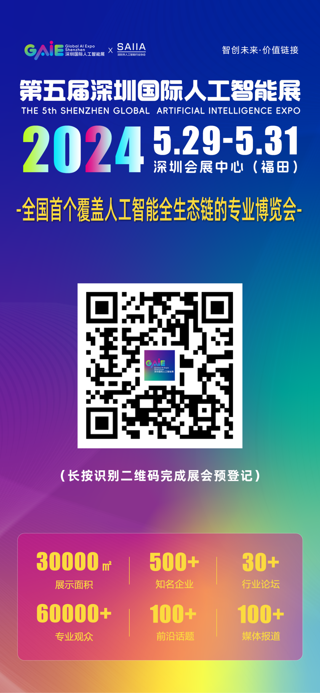 第五届深圳国际人工智能展将于2024年5月29-31日在深圳会展中心(福田)举办。本届展会围绕“智创未来•价值链接”主题,以现场互动展示、开幕论坛、供需洽谈、校企对接、专场主题论坛等形式,构建人工智能生态圈,倾力打造全国最专业、最具影响力的人工智能展会。