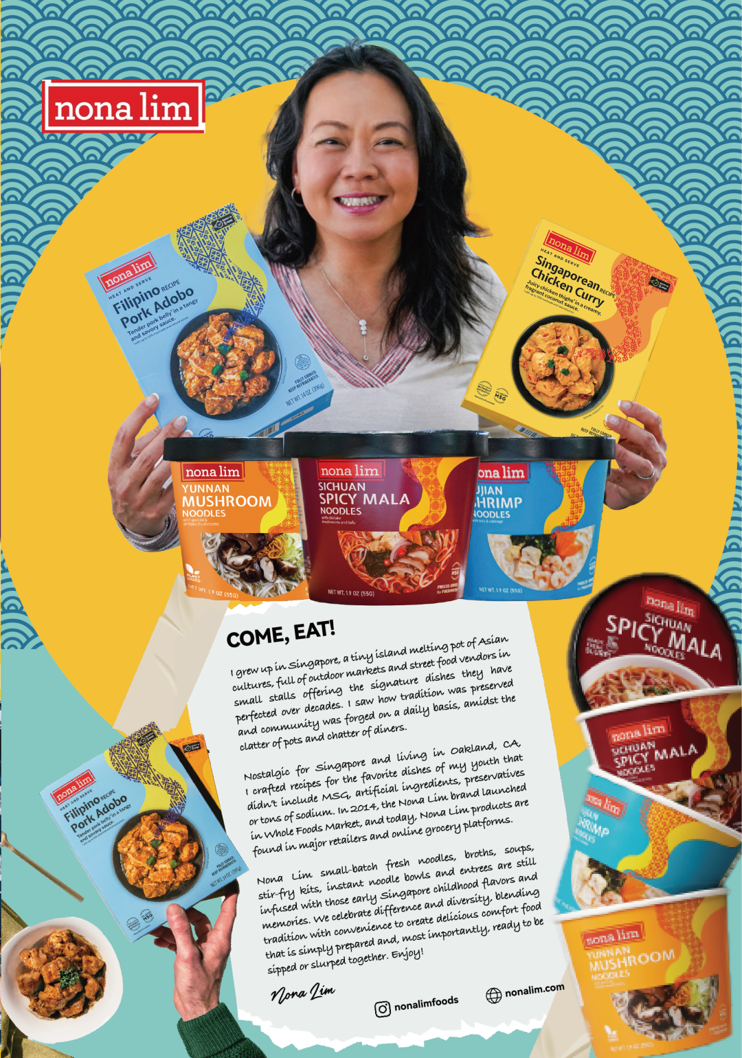 作为一名女性企业家和母亲,Nona Lim 深知忙碌的现代生活中,为家庭准备新鲜、健康的三餐并非易事。因此,Nona Lim推出了小批量新鲜面条、汤、炖菜,炒菜套装,即食面碗和主菜,让人们通过简单准备就能舒适享用一顿亚洲美味,最重要的是,这些产品随时可以品尝或啜饮,为忙碌的生活带来便捷。
