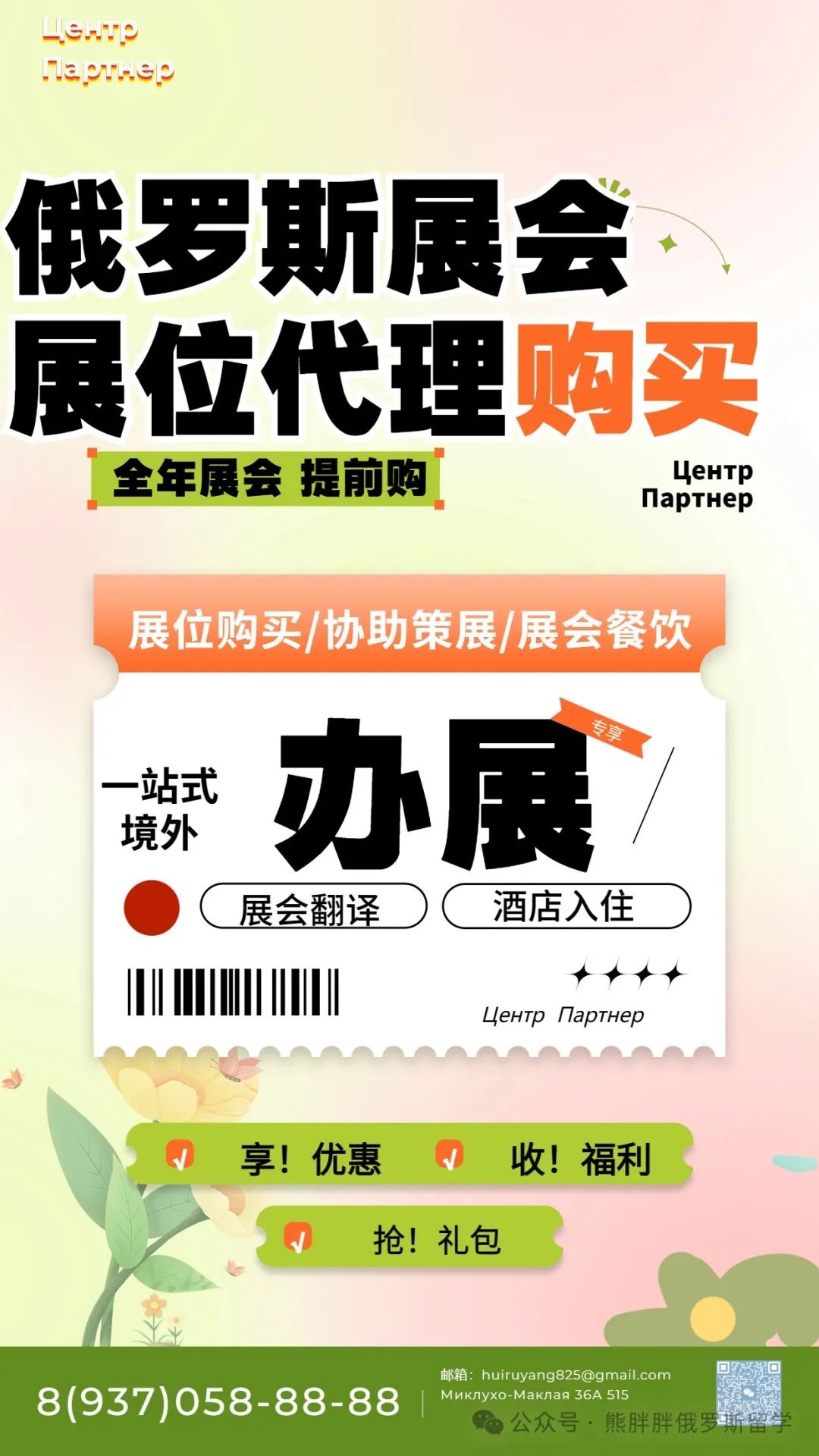 我司Центр Партнер是一家专门对接中俄人才的知识文化交流中心,地址位于ул. Миклухо-Маклая, 36А, 117279,我司现开展展会系列业务。