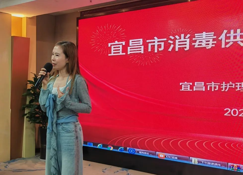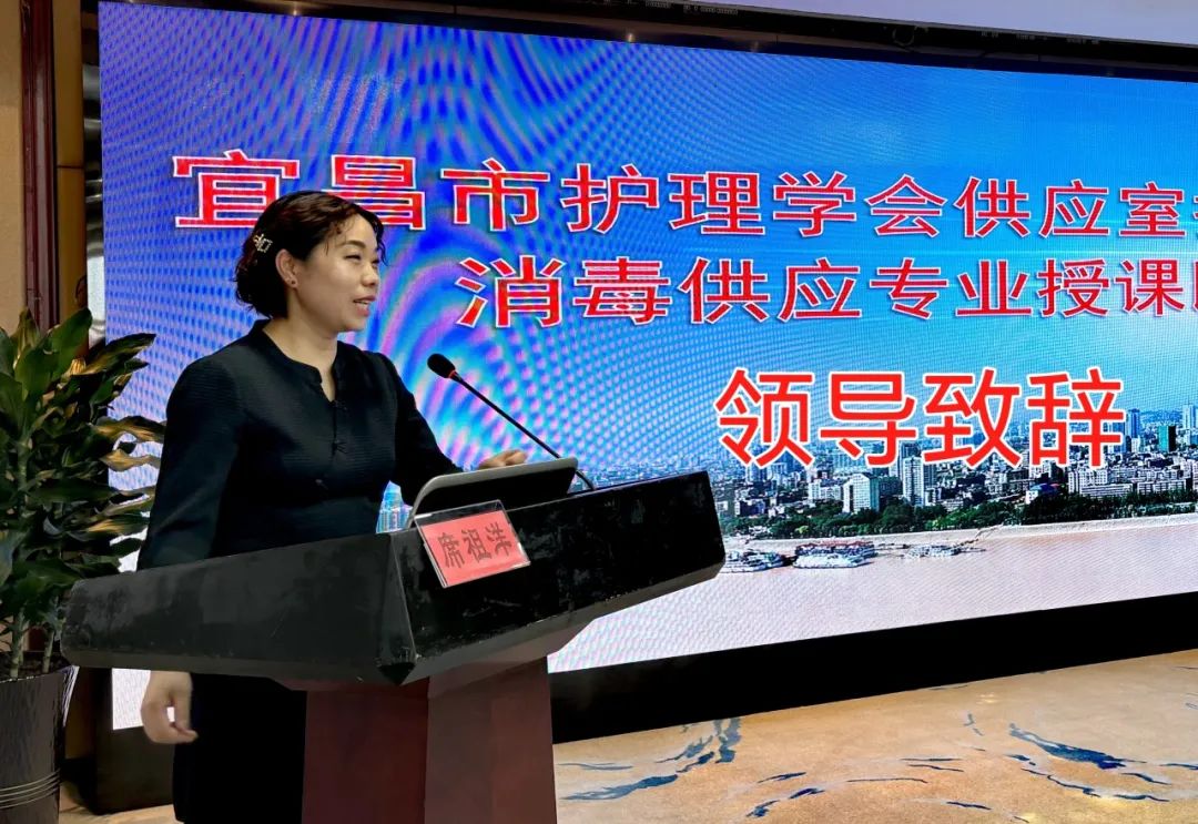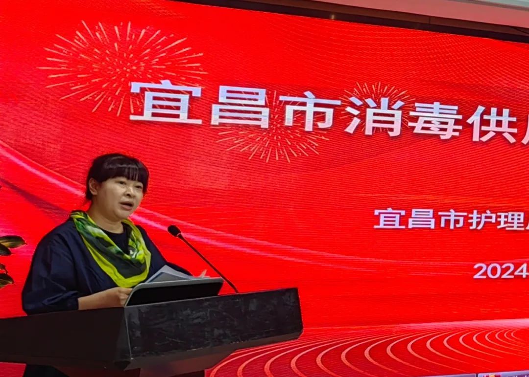 宜昌市护理质量质控中心主任、护理学会理事长席祖洋在致开幕辞。她强调消毒供应中心在医院感染控制和质量保障中至关重要,并提出以问题为导向、以数据为抓手、以循证为导引,践行党建三服务法,推动消毒供应专业发展。她期望通过此次竞赛交流教学经验、提升水平,促进全市消毒供应专业规范化、同质化发展。