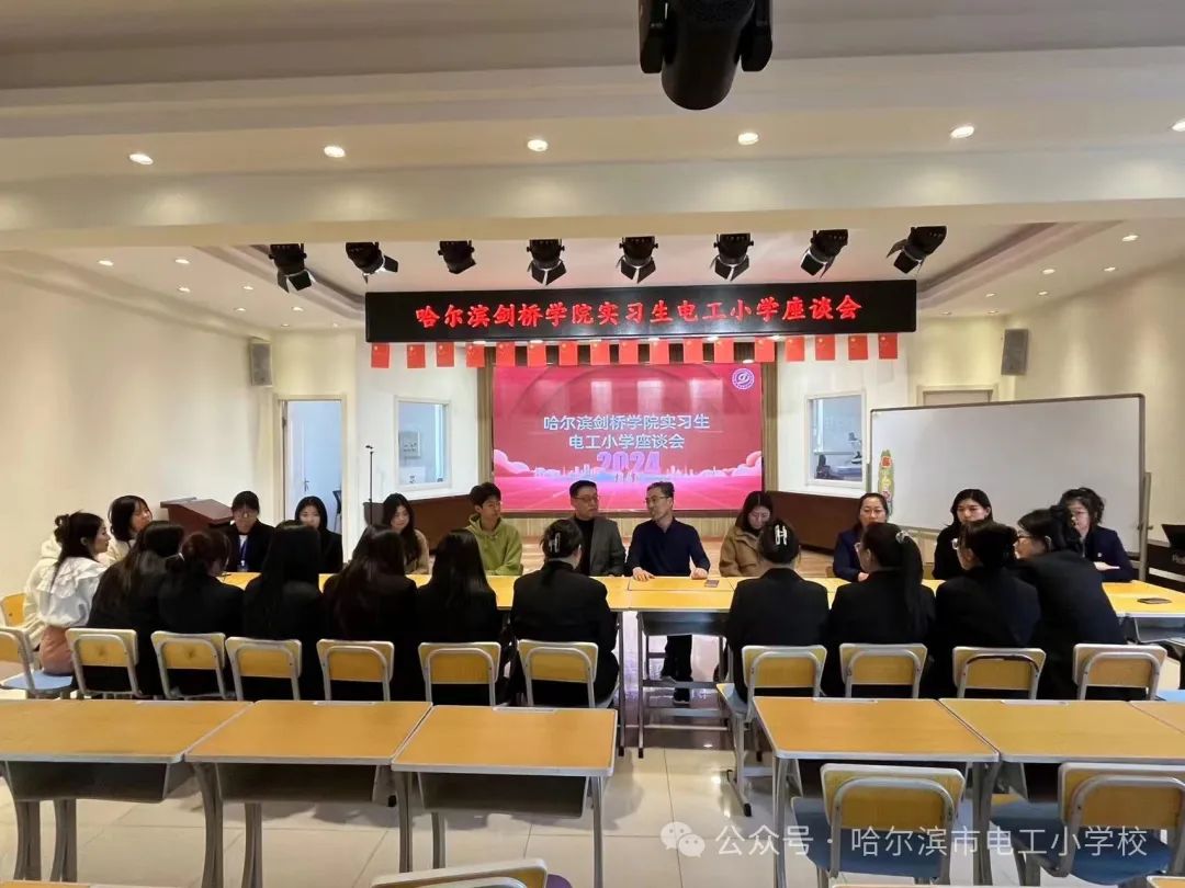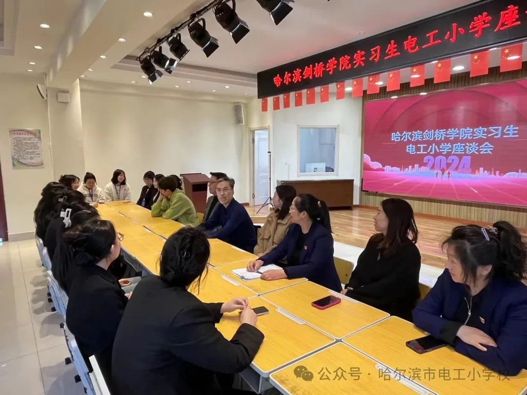 春日暖阳,邂逅一捧温暖。珍藏一份遇见,都是恰逢其时。4月19日,电工小学为在校一个月的实习生们举行了一个简短而热烈的座谈会。座谈会由电工小学嵩学俭副校长主持,孙丰瑞副校长,高岩副校长和指导教师全程参加了座谈会。