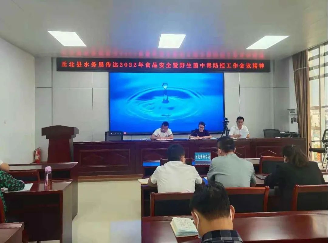 会议传达学习了(丘食安委〔2022〕1号)文件和2022年全县食品安全暨野生菌中毒防控工作会议精神以及有关野生菌中毒预警通告相关知识,结合水务工作实际对食品安全和野生菌中毒防控工作进行了安排部署。