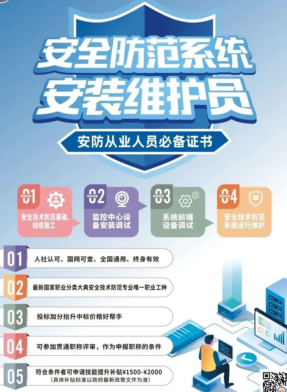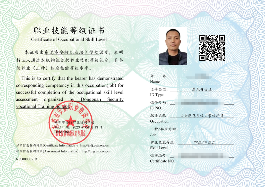 安全防范系统安装维护员职业技能等级证书,考证后可在人社官网、国网查询,证书全国通用。