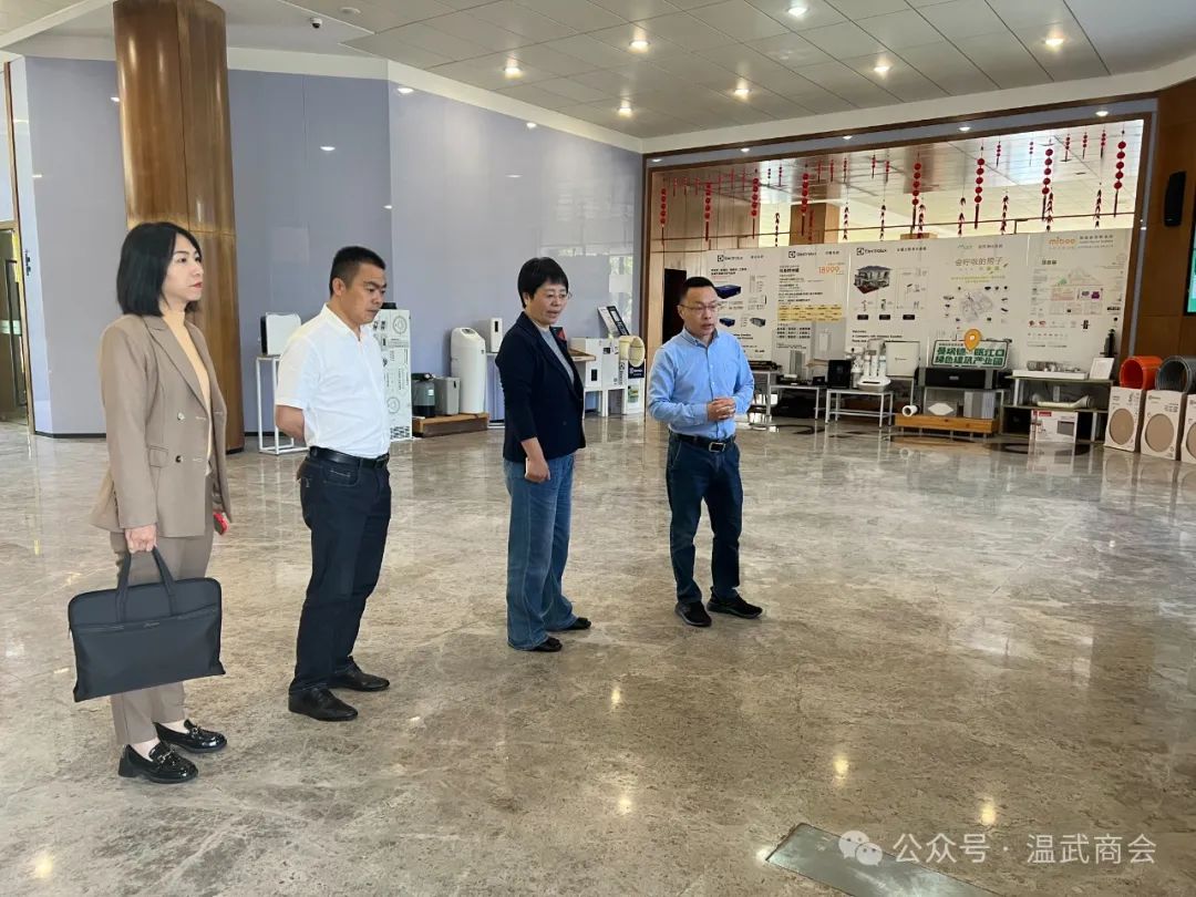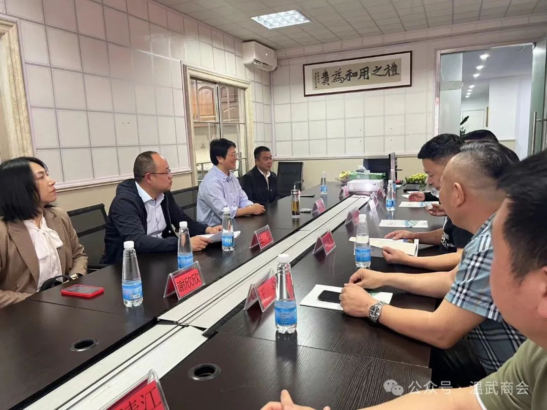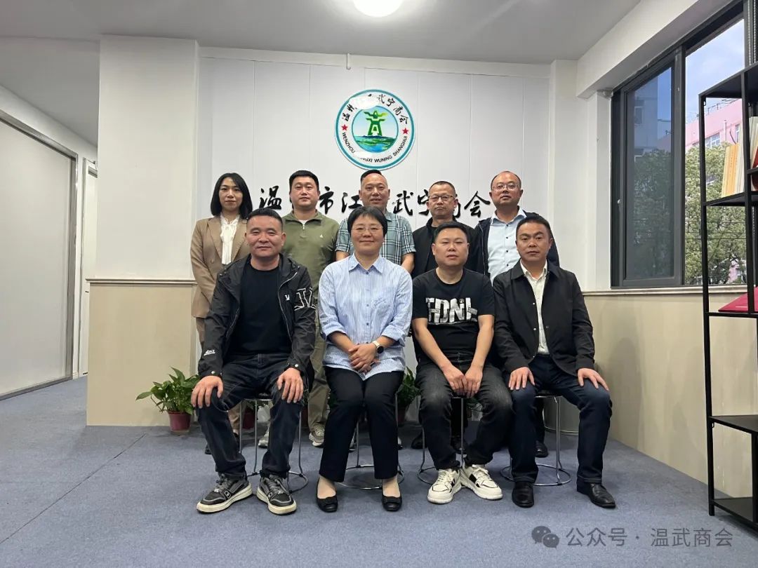 2024年4月17日,武宁县委书记洪碧霞、县政府副县长胡德玉、县委办公室主任王剑、县贸促会会长谢欣欣一行莅临温州市武宁商会,与我会会长汪国军、执行会长魏力鹏、执行会长唐骏乾、秘书长郑一平、党支部书记王焱、监事长刘清江座谈交流,共叙乡情乡谊、 共话桑梓发展。