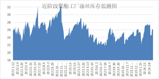 库存方面,根据绸都网统计数据来看,现如今聚酯市场整体库存集中在14-25天;具体产品方面,其中POY库存至14-25天,FDY库存至13-25天附近,而DTY库存则至13-25天左右。