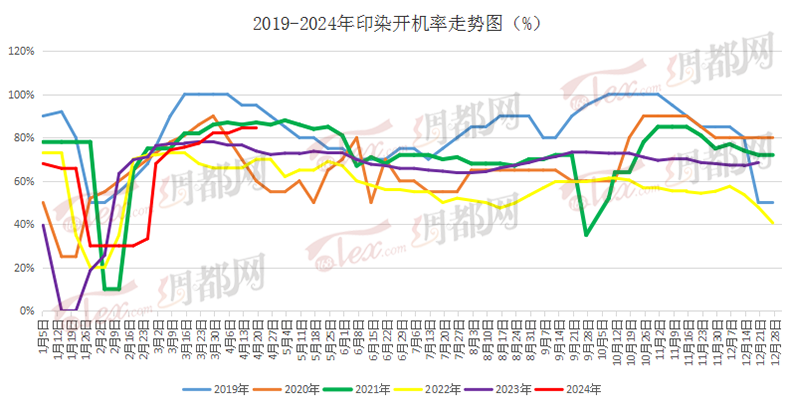 印染方面,染厂新单承接一般。车间开工暂稳,盛泽地区印染样本开机率为84.5%,较上周持平。当地染厂多进入集中交付阶段,常规品种询价落单频率窄幅下降。订单方面,国内防晒轻薄以及户外用品增量明显。交期方面,由于订单数量较上周有所回落,交期也有缓和,普遍在10天左右,个别产品和厂家则需15天以上。