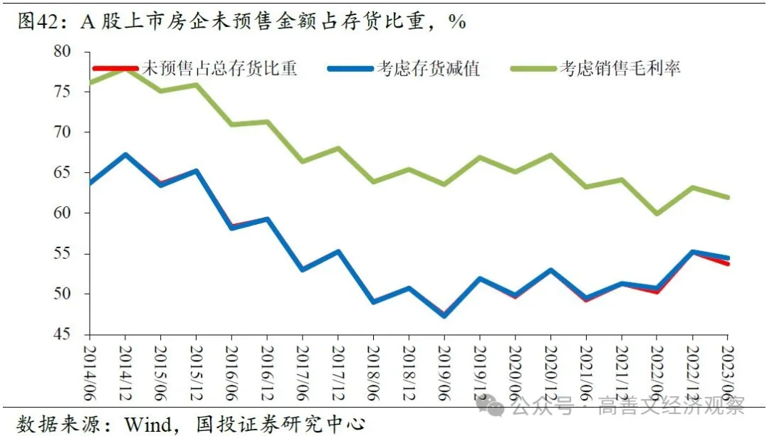 大部分开发商目前的库存都是前一两年拿下来的,房企的财报中也能看出来,房企的存货比重从2014年后就在逐渐下滑。