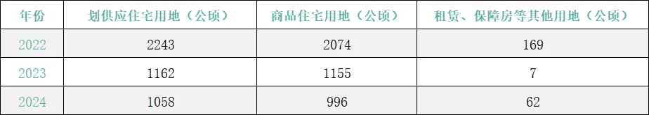 这里我们只看住宅供应,2024年的住宅用地计划供应只有996公顷,相比去年减少了159公顷,约14%,相比2022年,更是缩减了一半以上。