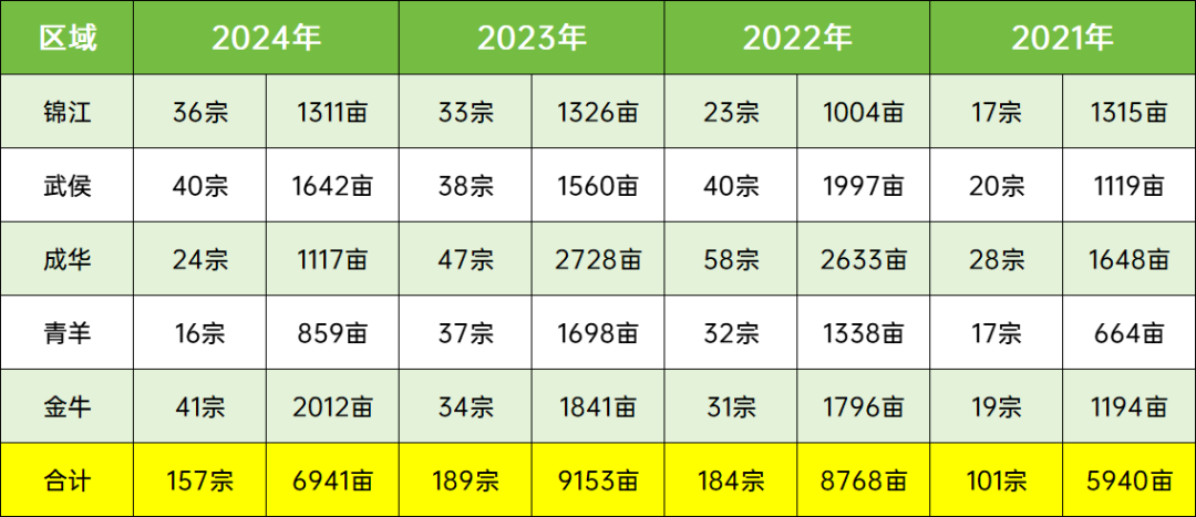 成都主城五区2024年供地计划已全部公布,单从数据来看,比去年减少了2212亩,降幅约24%。