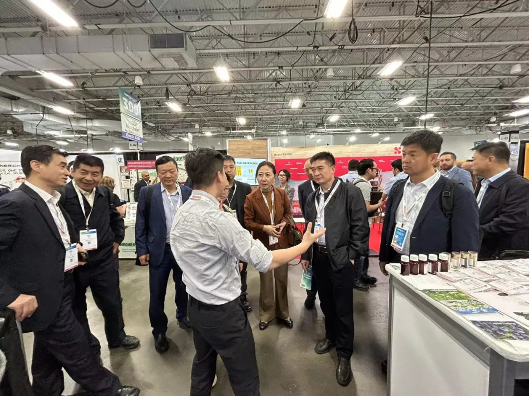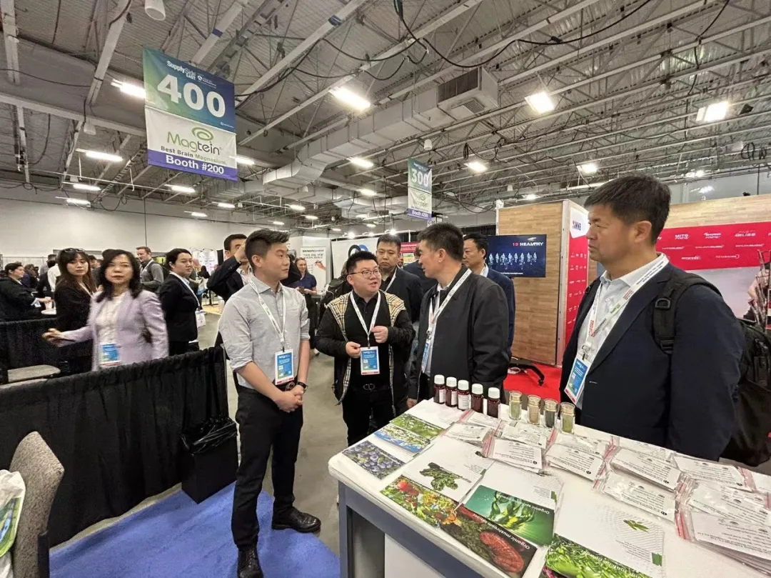 经贸团一行在美国参观了西部企业家商会副会长企业、陕西慧科植物开发有限公司在“2024美国天然、健康和创新原料(东部)展览会(SupplySide East)” 的展位,并与西部企业家商会副会长、公司总经理陈冠宇沟通交流。