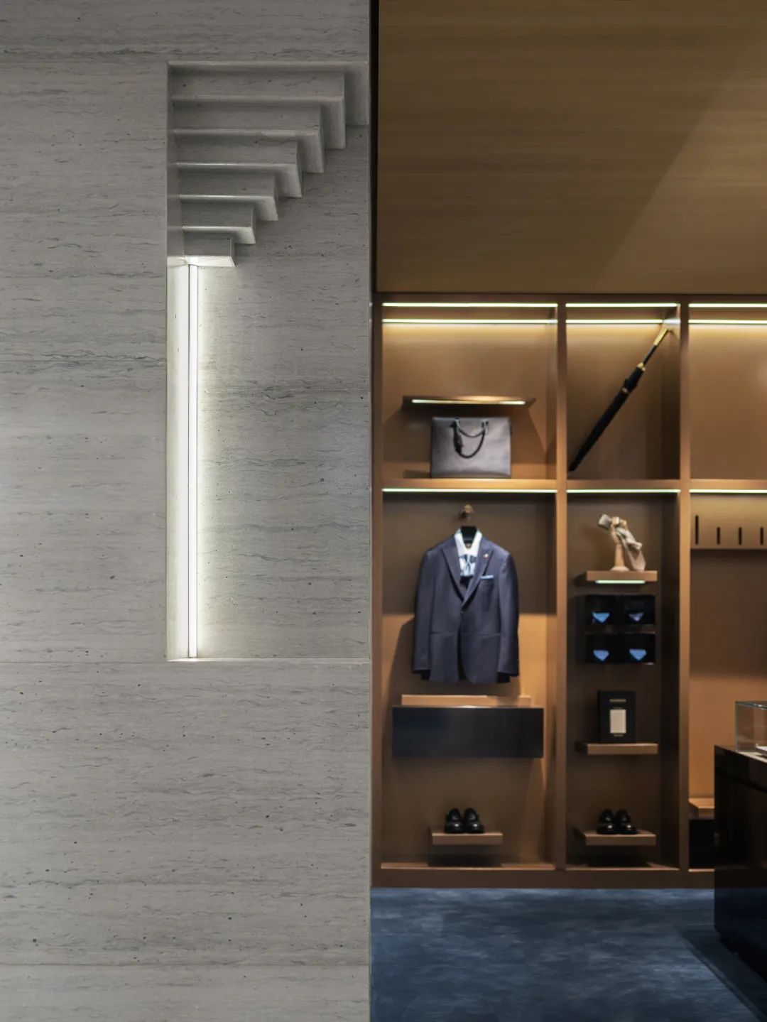With the development of the times, the brand has witnessed and actively participated in the transformation of urban life—building upon a foundation of timeless and classic clothing styles, continually refining tailored cuts to suit the body shapes of individuals in the East. On the occasion of its 30th anniversary, as a crucial component of its image upgrade, KALTENDIN has invited MOC to create an entirely new standard for its store identity.