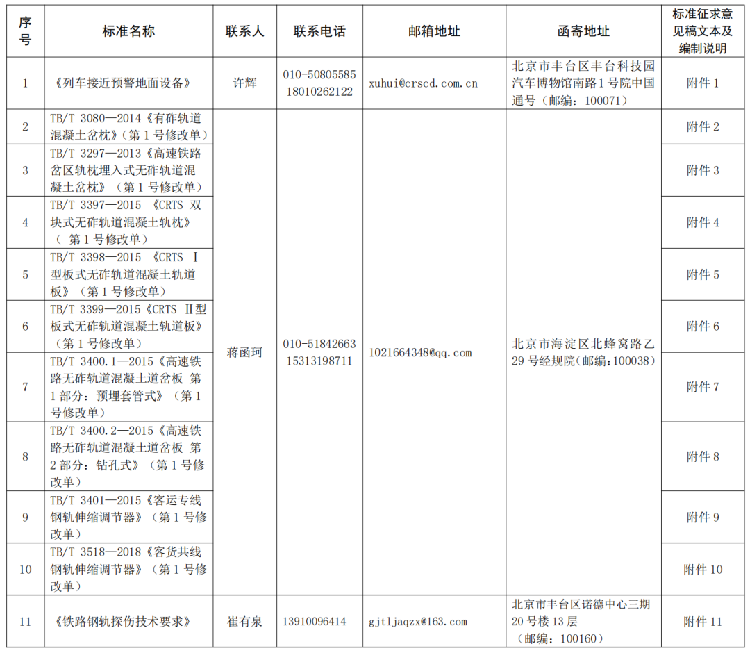表和附件1—11)。请于5月18日前将《铁路行业标准征求意见表》(见附件12)通过电
