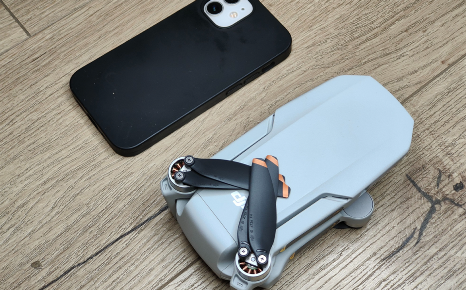这款大疆Mini2 SE是一款入门级迷你航拍无人机,从“Mini”就能看出,这台无人机十分小巧,甚至单手就能掌握,放在包中和口袋中也没有压力,而且重量仅有249克,相当于一台iPhone14 ProMax的重量。