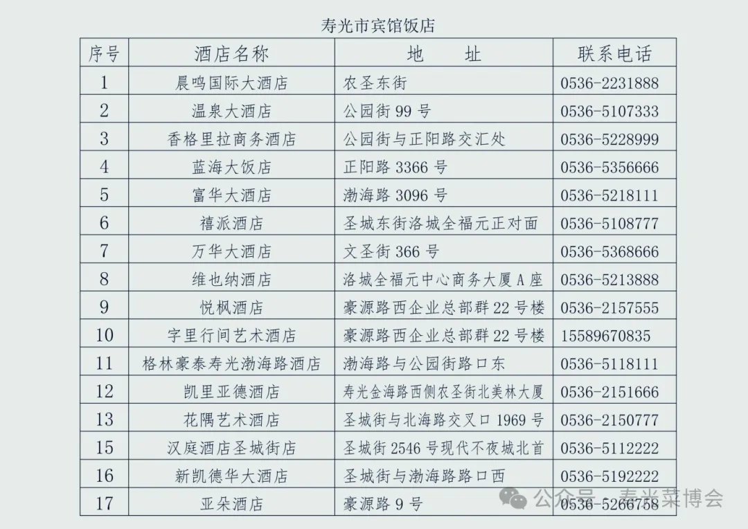 寿光市部分酒店、宾馆一览