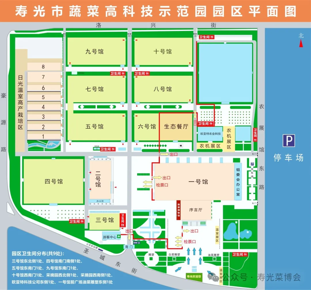 本届菜博会主展区位于寿光市蔬菜高科技示范园(寿光国际会展中心),地址为山东省潍坊市寿光市圣城东街108号,圣城东街与豪源路交叉口。