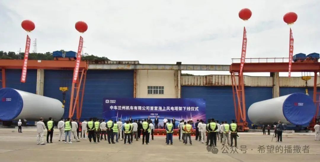 5月9日,惠风和畅、万物并秀,中车兰州公司首套海上风电塔架下线仪式在宁波生产基地举行。