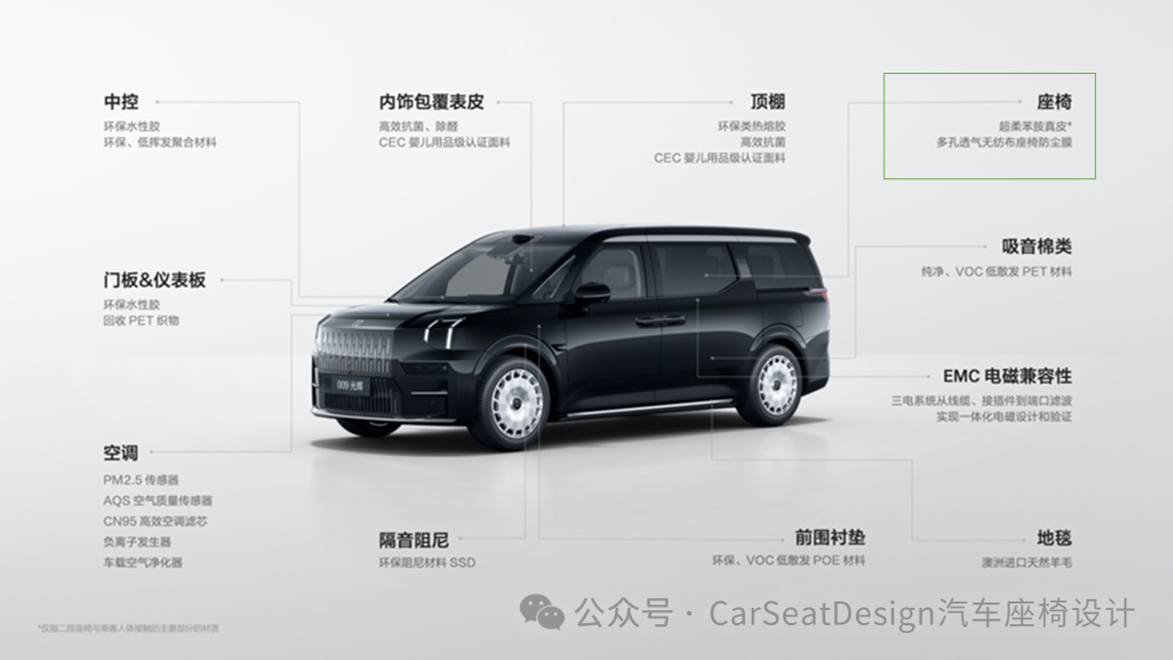 极氪009光辉在材料安全,电磁辐射安全和车内空气质量三方面,全部满足“母婴级”使用标准,并得到中汽中心的权威认证。