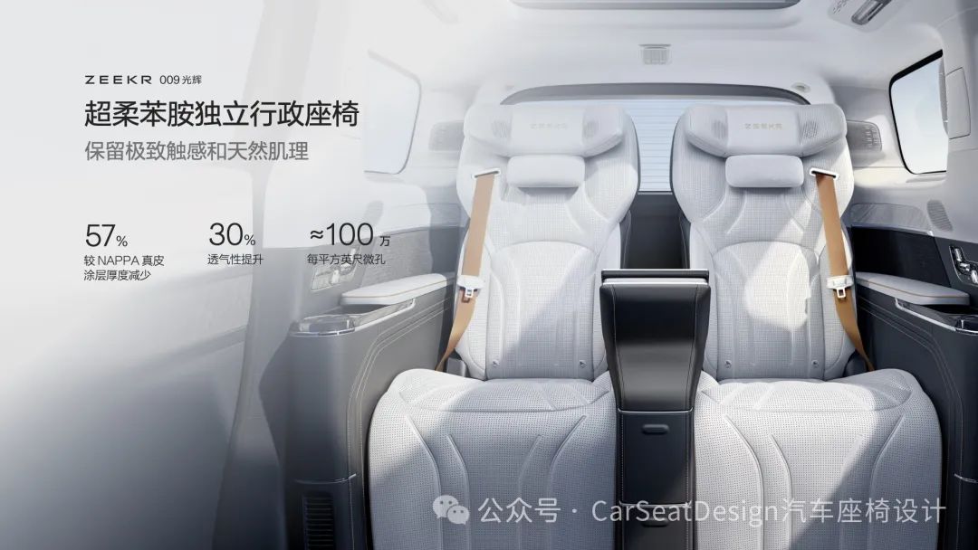 极氪009光辉的座椅是全球唯一提供12区支撑的人体工学汽车座椅。从内到外共11层的座椅结构,20mm的梦幻回弹海绵,可在百万级舒适底盘之上,进一步过滤路面震动。