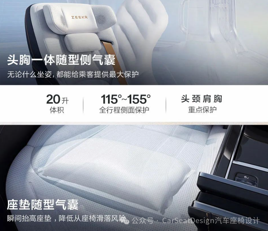 其次是全球首创随型安全气囊。区别于传统固定式的安全气囊,极氪009光辉将专门开发的随型气囊,嵌入后排座椅。