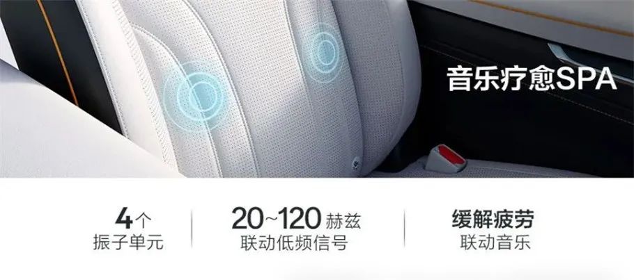 每个座椅均配备2颗振子,可以根据频率和音乐智能联动。通过振动音乐疗法,让乘客在短时间内,缓解疲劳和焦虑,获得最高质量的放松。