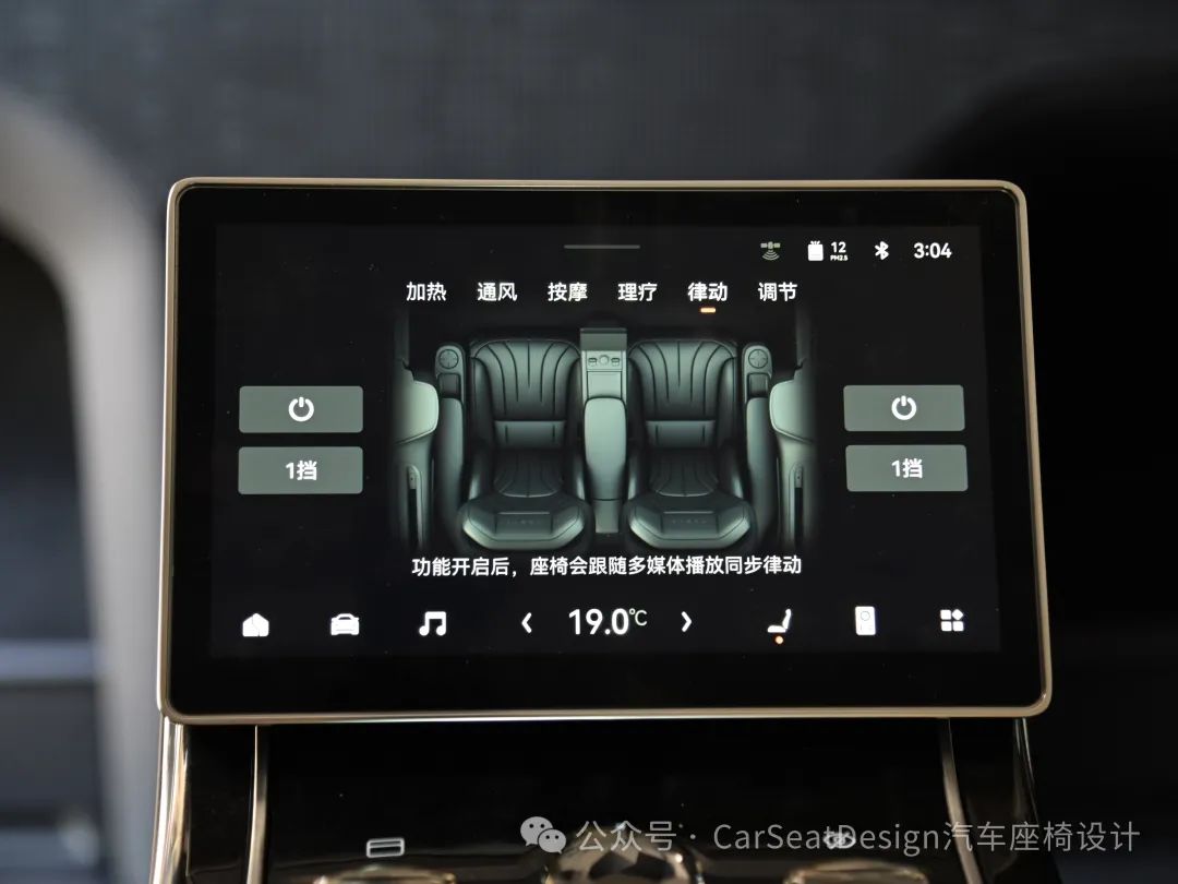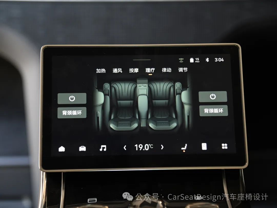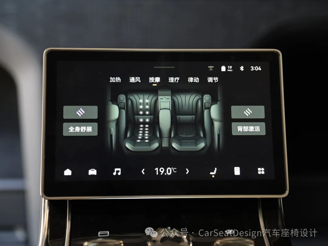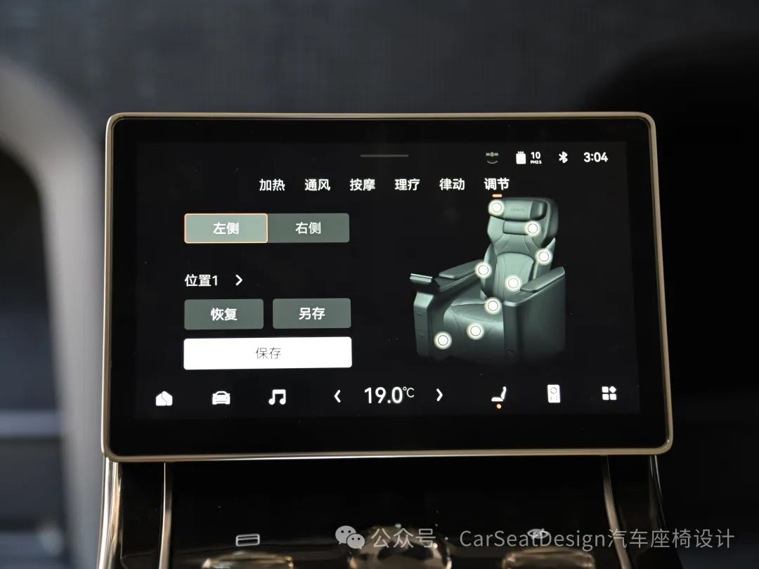 不同于普通按摩座椅的震动方式,极氪009光辉的座椅采用气袋式按摩,模仿真人理疗师的真实指感,可以提供8种不同的专业按摩手法。
