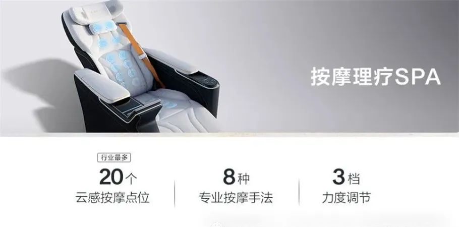 每张座椅一共20个按摩点位,照顾身体的每处痛点,尤其是最容易疲劳的肩颈部位。