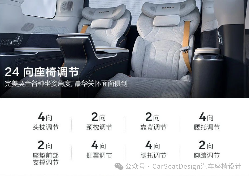 每张座椅都有24向调节,则无论什么身材,都可以找到最舒适角度。