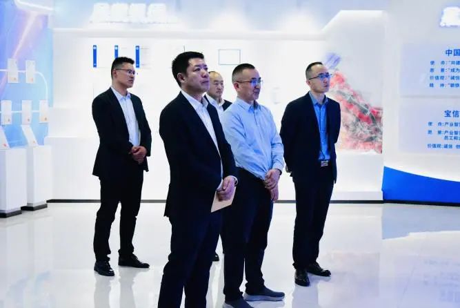 王万新一行首先参观了安徽宝信展厅,详细了解安徽宝信公司历史沿革、核心能力及公司发展情况。在座谈交流中,劳兆利对王万新总经理一行到访表示欢迎,他介绍了安徽宝信公司基本情况,公司凭借先进的技术实力和丰富的行业经验,已经在多个领域取得了显著成果。