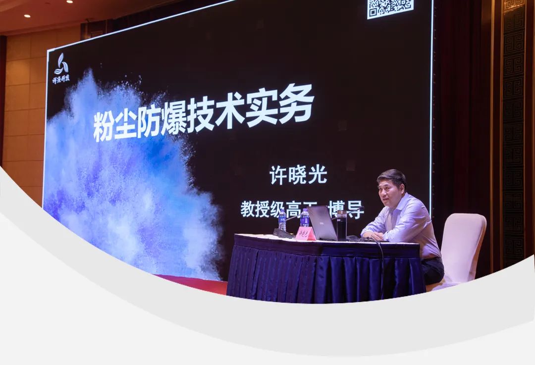 在培训班上,教授级高工、博士生导师、祥源科技董事长许晓光应邀作了一场题为《粉尘防爆技术实务》的专题培训。