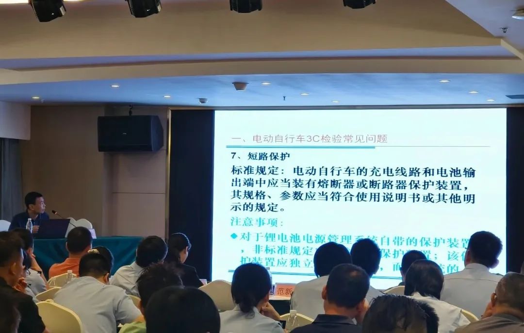 会议邀请了广西质检院专家谢汝峰围绕《电动自行车安全技术规范》(GB17761-2018)、《强制性产品认证实施规则 电动自行车》(CNCA-C11-16:2023)、《电动自行车用充电器安全技术要求》(GB 42296-2022)、《电动自行车电气安全要求》(GB 42295-2022)等电动自行车产品认证实施细则和有关标准进行培训讲解,引导电动自行车经营商户了解掌握电动自行车电气安全、充电器安全领域最新强制性国家标准的有关规定,提升电动自行车行业经营者质量安全主体责任意识,不断提高经营行为规范化水平。