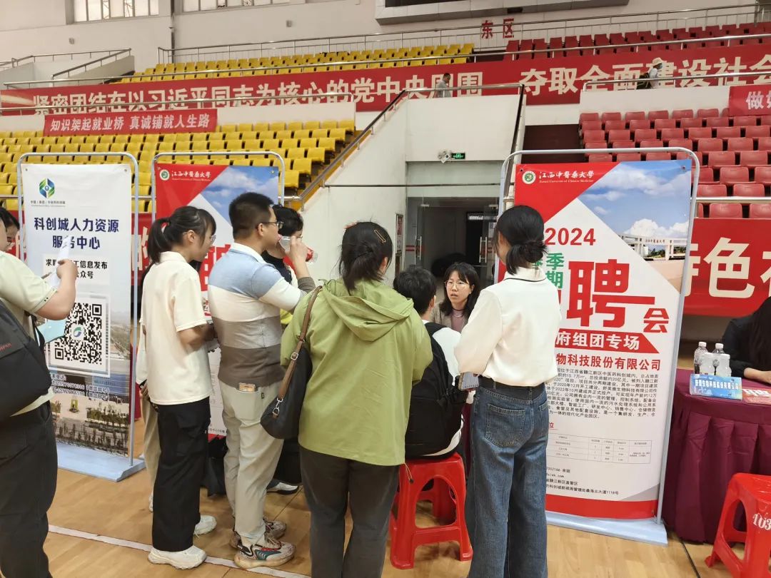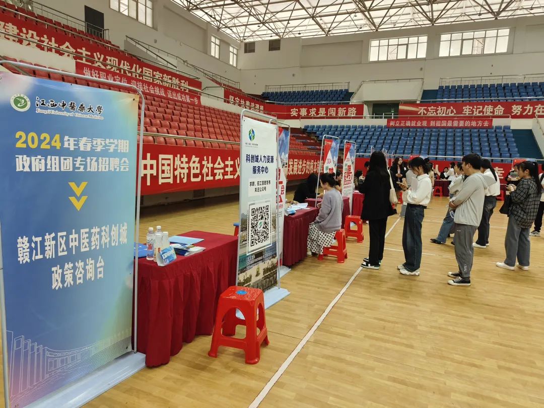 为进一步缓解科创城园区企业招工用工压力,助力应届毕业生实现充分就业,围绕中医药科创城“创新研发引领、高端产业聚集”目标定位,大力招引中医药产业发展紧缺的各类人才,充实企业中高端人才技术储备,4月20日,由鸿雁人力公司运营的中医药科创城人力资源服务中心发挥供需对接平台作用,携手辖区赣江中药创新中心、江西省道地药材质量评价研究中心、中国中医科学院中医药健康产业研究所、江西唯铂莱生物制药有限公司、江西古香今韵大健康产业有限公司、江西大生医药科技有限公司等园区6家重点企业参加江西中医药大学2024年春季学期政府组团校园招聘会。
