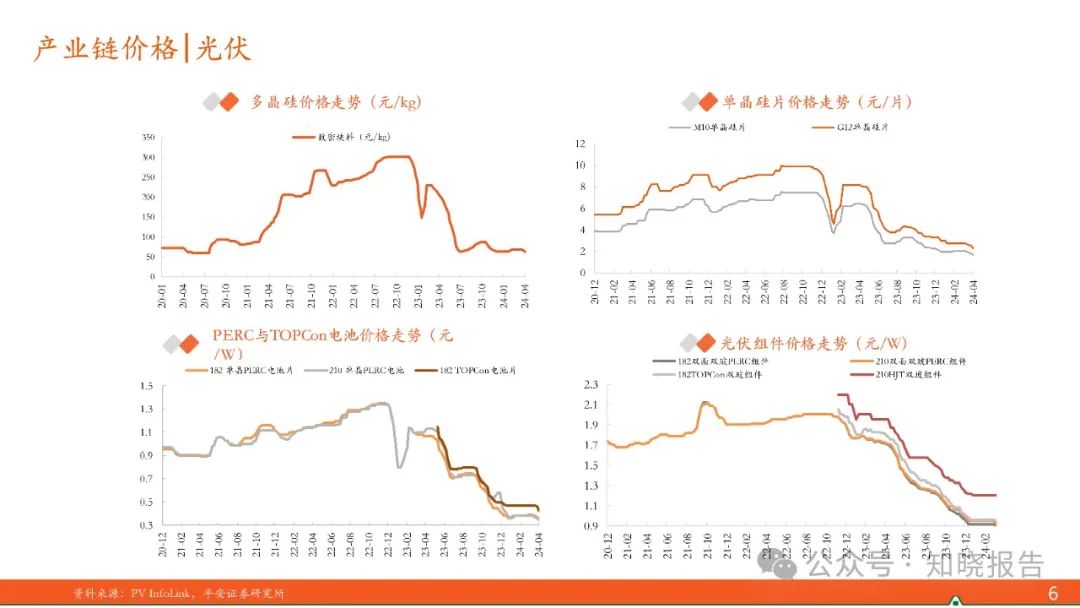 2月受春节影响出口数量与金额环比小幅下行;1-2月逆变器出口金额同环比均有所下滑。产业链价格延续行趋势,上游硅料、硅片随着库存累积价格继续走低,盈利情况进一步恶化;N型电池价格相对平稳,盈利有修复趋势。
