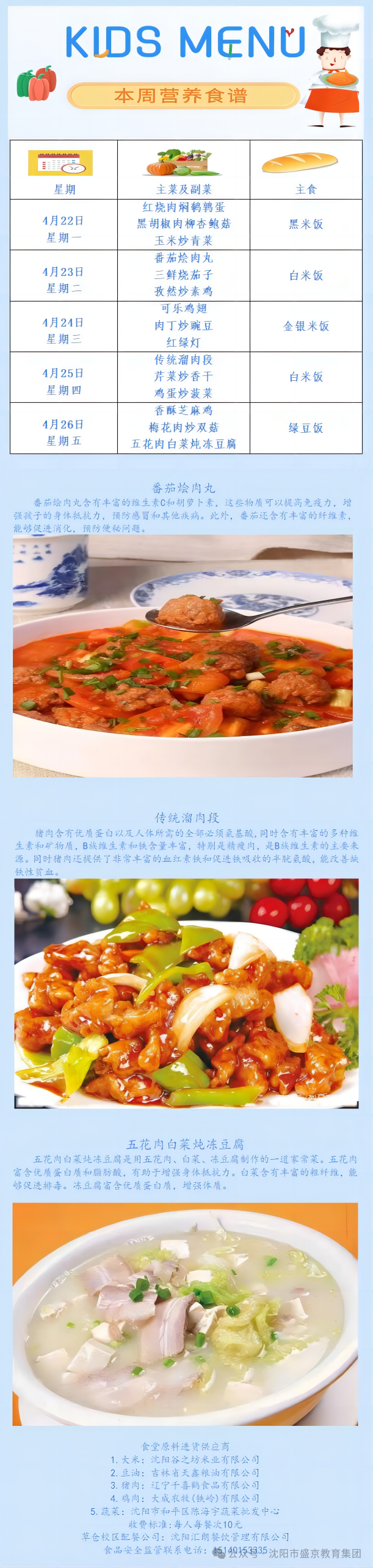 【美食盛京】盛京教育集团4月22日—4月26日 一周营养食谱