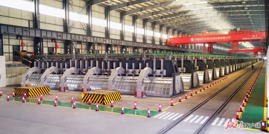 图为酒钢集团东兴铝业公司铝电解系列生产线。