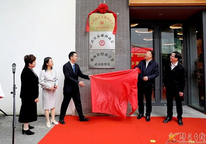 仪式上,查宏、雷震、胡勇、阮登香、邹宽君共同为“中国共产党武汉市郧西商会支部委员会”“武汉市郧西商会”“郧西县招商引资武汉联络处”揭牌。
