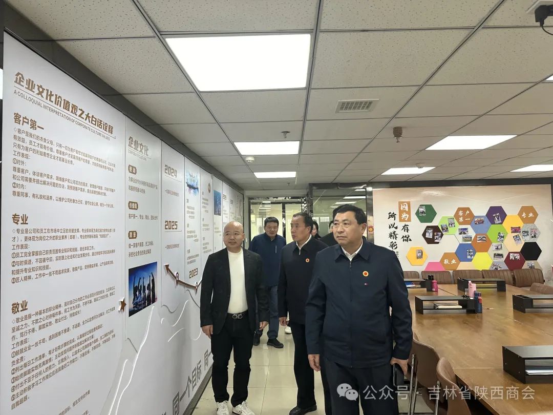 为贯彻落实商会服务会员的办会宗旨,持续提升服务水平,不断增强商会活力与凝聚力,4月19日下午,吉林省陕西商会会长李耀权,执行会长兼秘书长高跃峰,执行会长贾金国,常务副会长李峰、朱南松(公司代表),副会长韩剑锋,理事师福东、崔璀等一行前往副会长徐广军的企业进行走访。