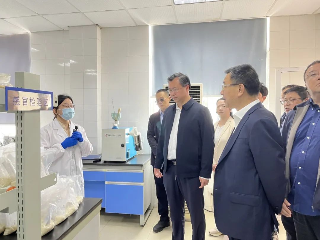 万震董事长一行参观了交易区和化验室,对苏粮市场交易品类和规模作了详细了解,深入考察了苏粮市场的动态储备和粮油质量检测在整个流通和储备过程中发挥的重要作用,并对苏粮市场在粮食安全保供方面的贡献给予了高度评价。