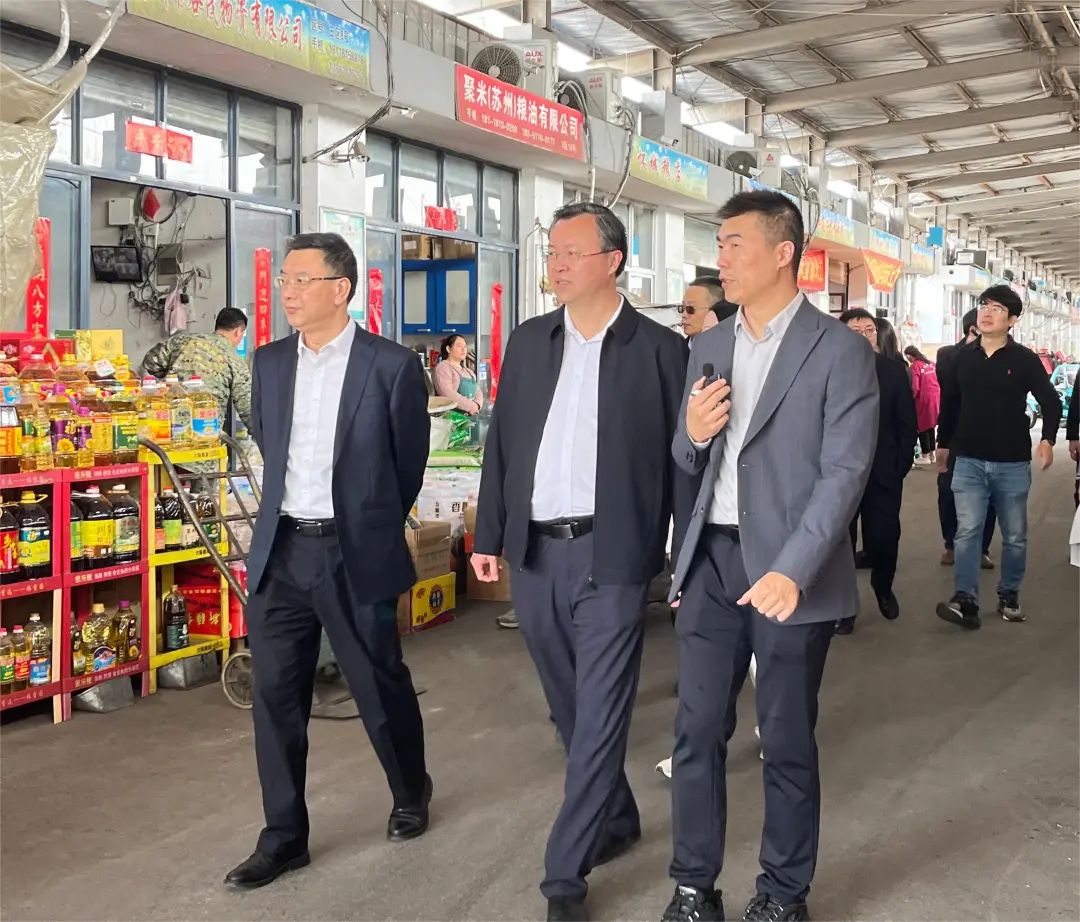 4月19日上午,南京新农发展集团董事长万震一行莅临苏粮市场调研,集团总经理吴果伟、市场领导班子等相关领导陪同调研。