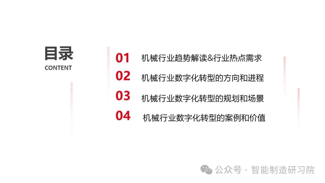 描述了机械行业管理数字化的目标,提出了数字化管理蓝图,并展望了数字化转型的价值。