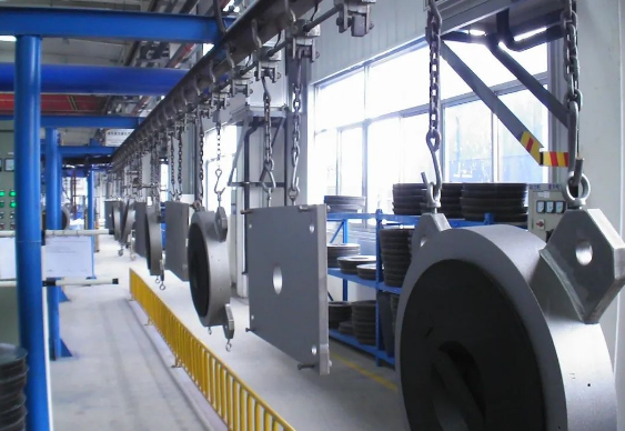 5、悬挂输送线:悬挂输送线就是悬挂链输送线,以悬挂的方式完成产品的输送,常与链板输送线一起应用于汽车制造等行业。