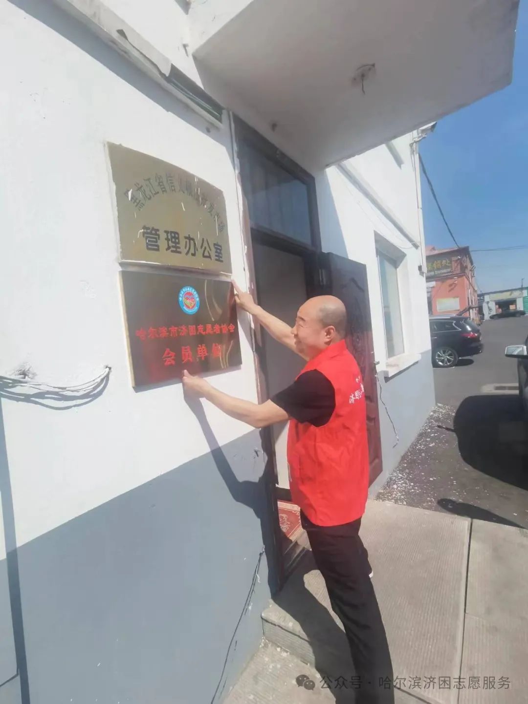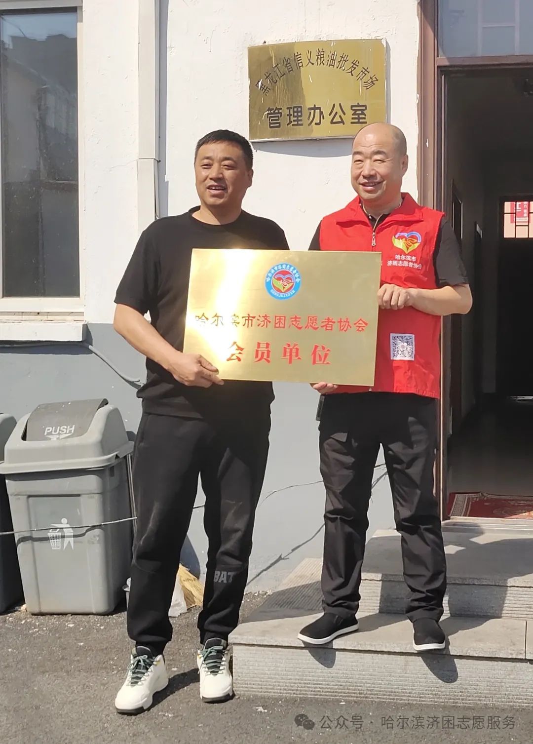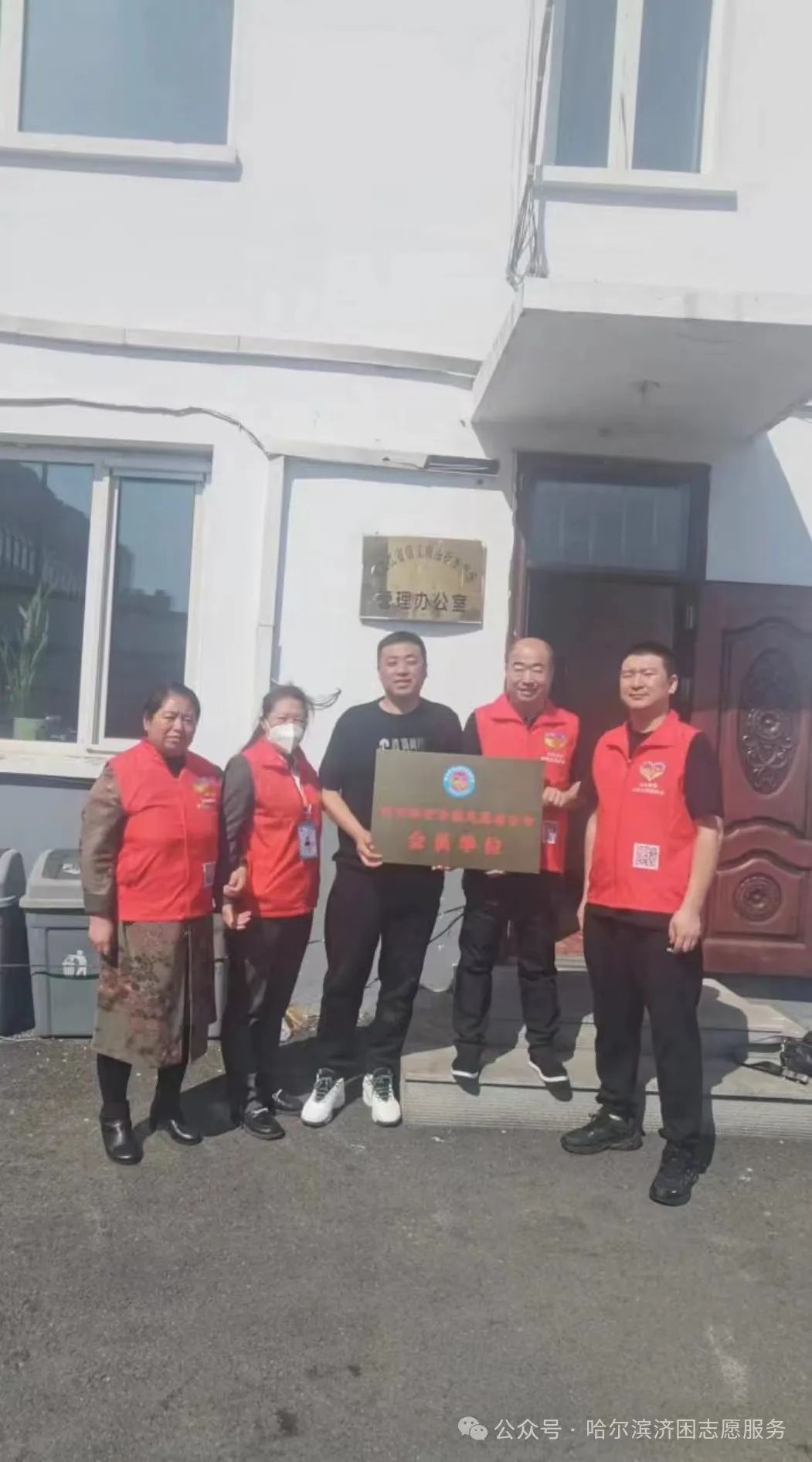 4月17日,哈尔滨市济困志愿者协会领导班子,在会长姜元年同志带领下,来到“黑龙江省信义粮油批发市场有限公司”为过去一年大力支持协会工作的爱心企业授牌,并表示感谢。