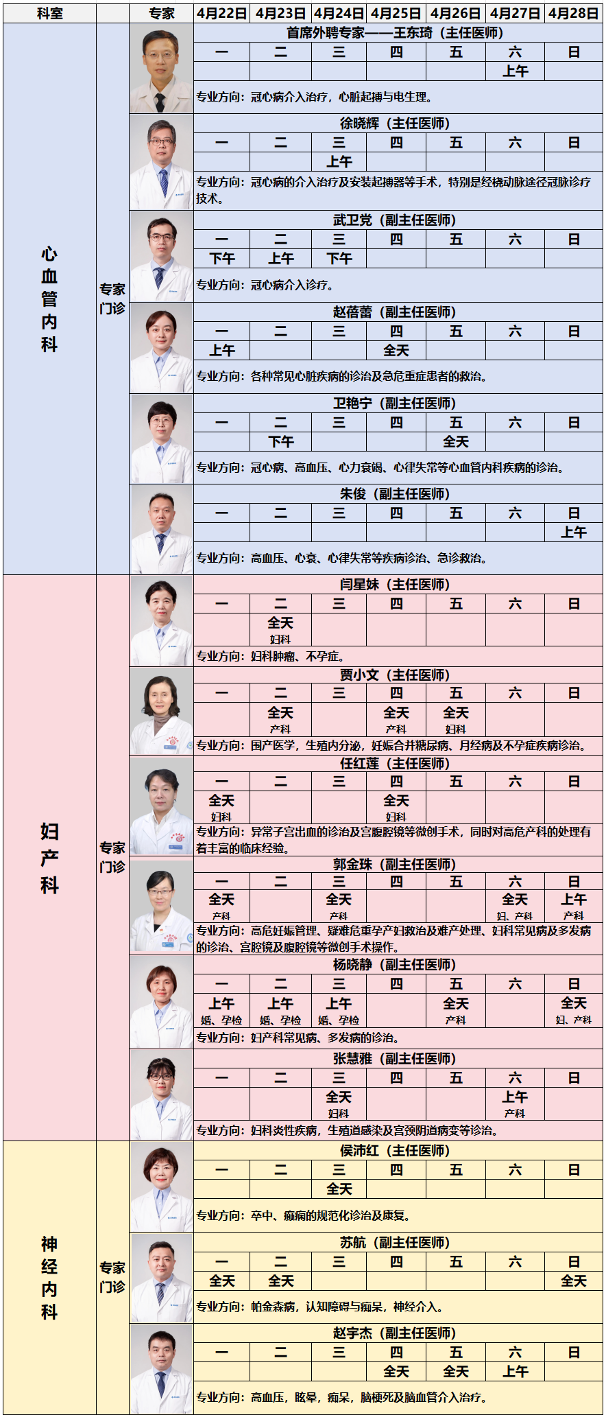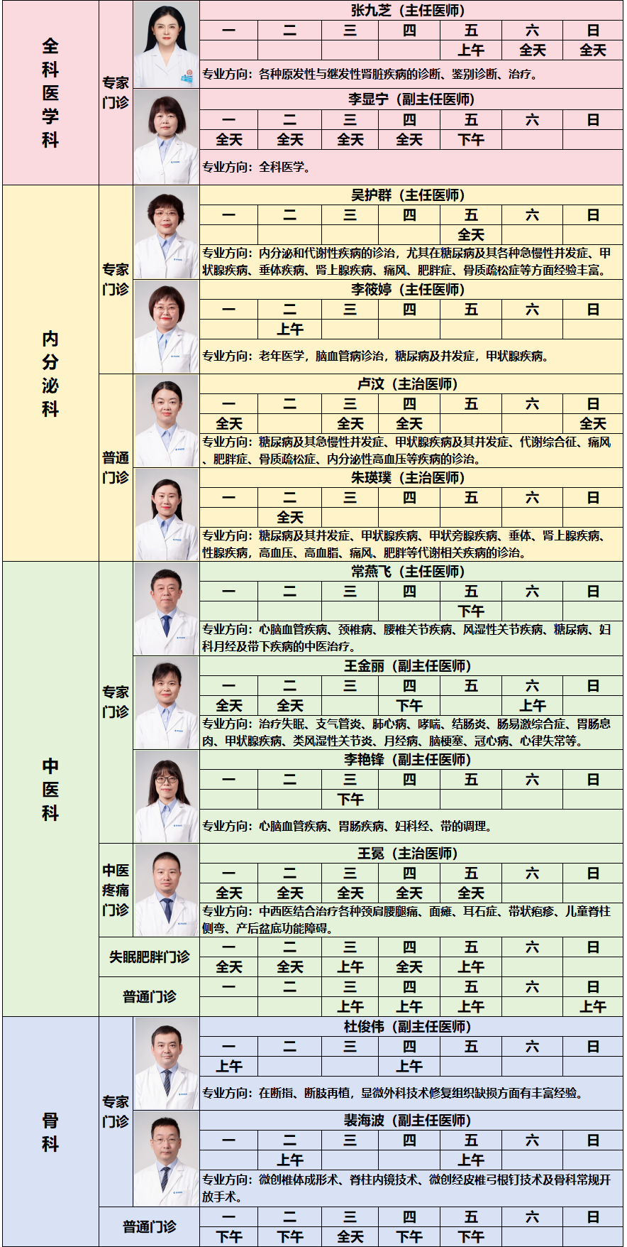 (如有特殊变化,请以当日具体坐诊情况为准)